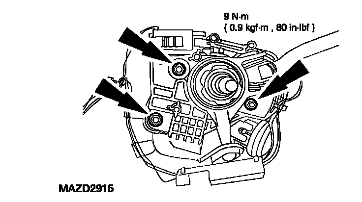 3. Remove the nuts and bolt and remove the transmission range selector lever and solenoid assembly.