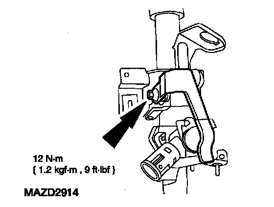 6. Remove the bolt/nut and remove the steering column mounting bracket.
