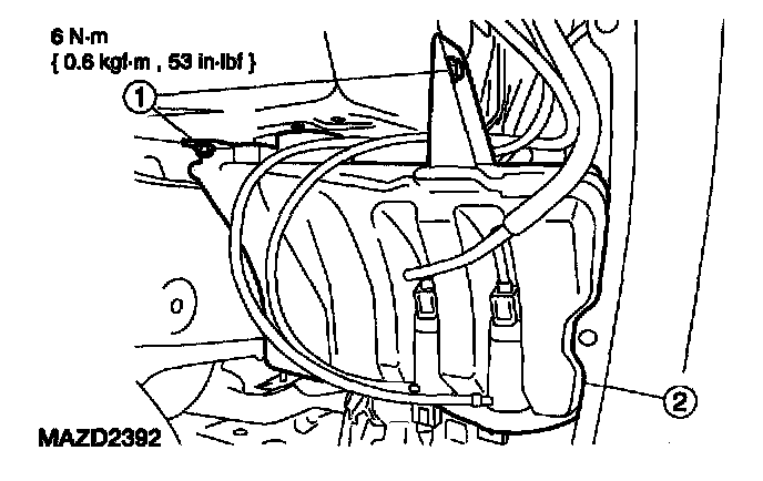 NOTE: To prevent spilling windshield washer fluid, drain the windshield washer reservoir before removal.