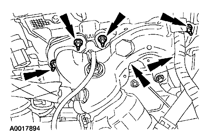 64. Remove the six transaxle bolts.