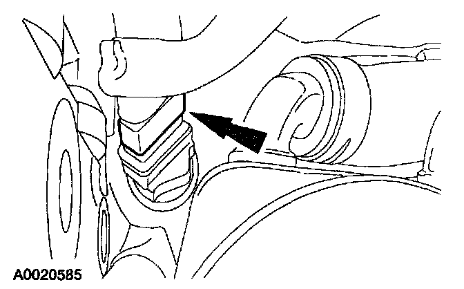 5. Remove the A/C manifold and tube assembly bolt from the top of the A/C compressor and disconnect the A/C manifold and tube assembly.
