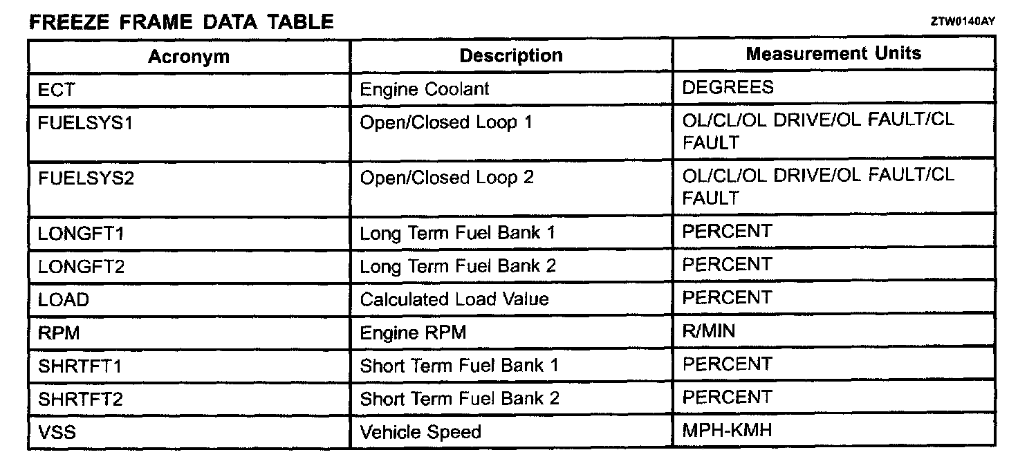 FREEZE FRAME DATA TABLE