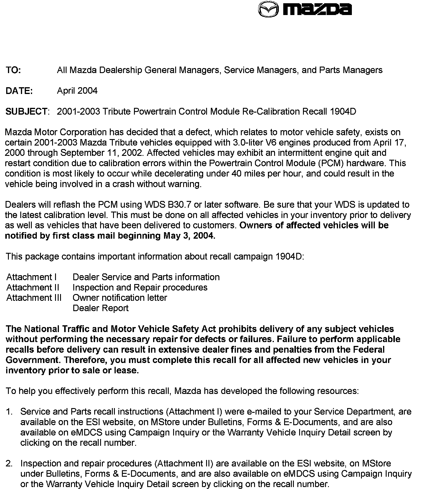 Recall - PCM Recalibration For Engine Stalling