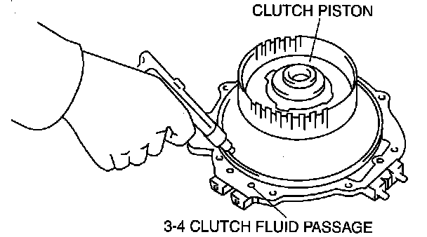 2. Remove the 3-4 clutch piston from the 3-4 clutch drum by applying compressed air through the fluid passage.