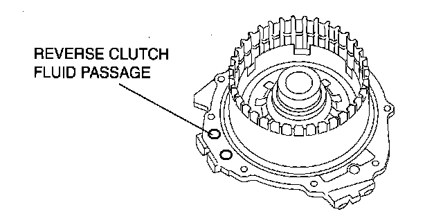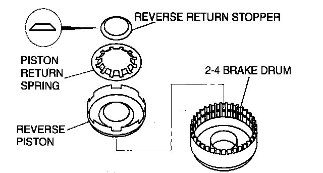 2. Remove the reverse piston from the 2-4 brake drum by applying compressed air through the fluid passage.