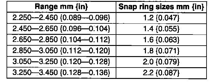 (9) Install the selected snap ring and perform steps (2) to (7) again. Verify that the calculated value satisfies the clearance specification.