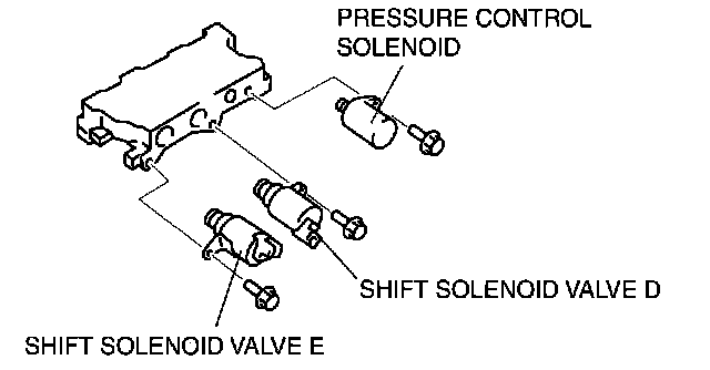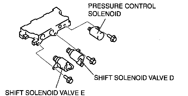 6. Remove the pressure control solenoid, shift solenoid D, E.