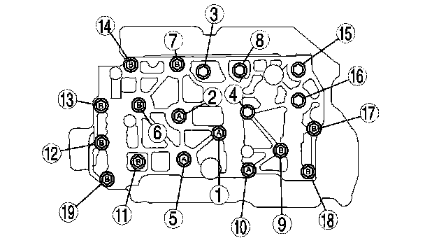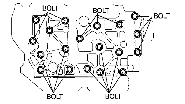 8. Hand-tighten the bolts shown in the figure. Each type of bolt has a different letter on its head. Match the bolt letter with the letter stamped next to its installation hole on the valve body.