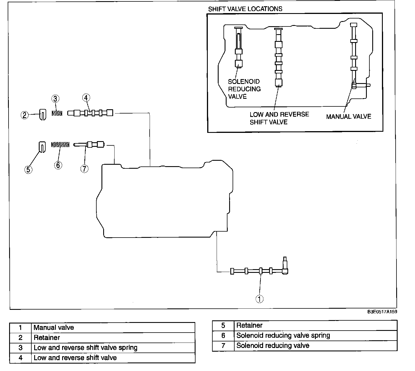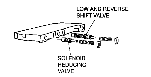 3. Install the low and reverse shift valve, low and reverse shift valve spring and retainer