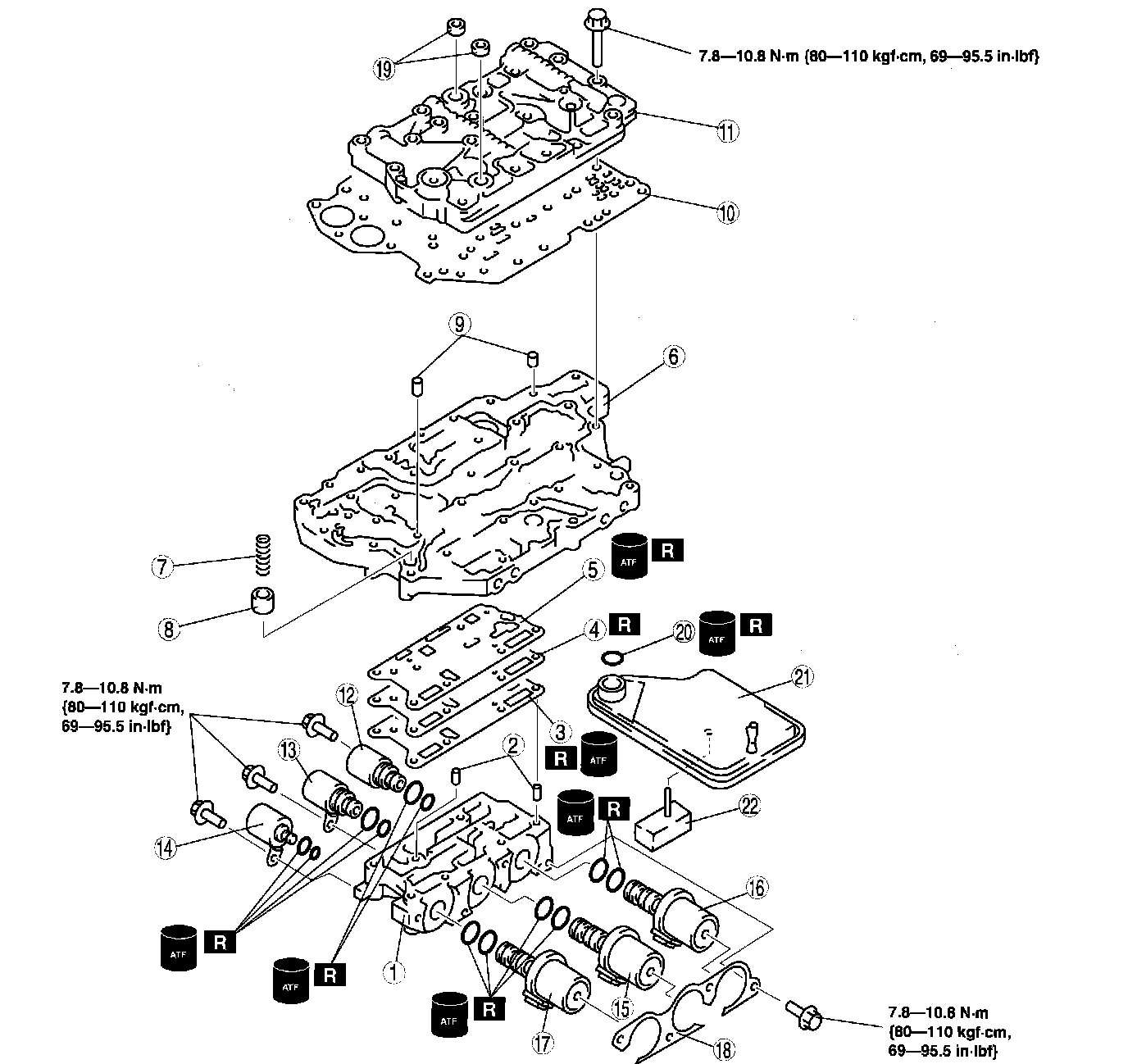 Tightening torque 7.8 - 10.8 Nm (80 - 110 kgf-cm, 69 - 95.5 inch lbs.)