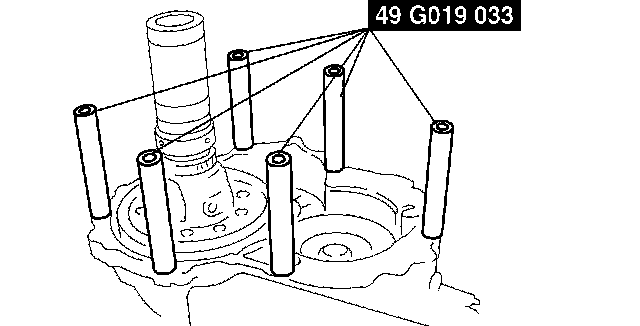 7. Set the six SSTs (collars) on the transaxle case in the position shown.
