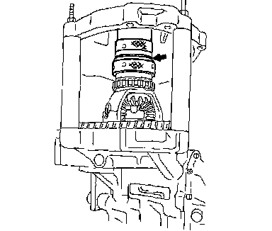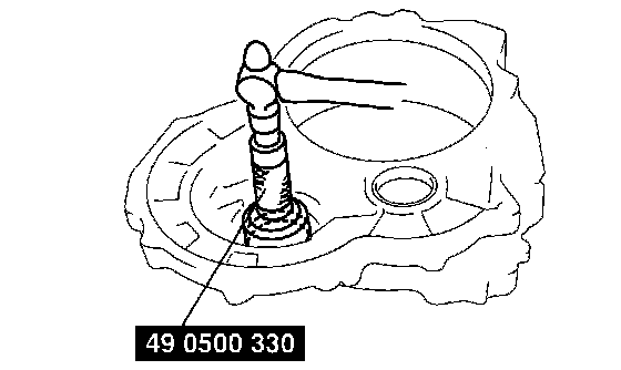 17. Install the required adjustment shim and tap the bearing race into the converter housing.