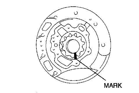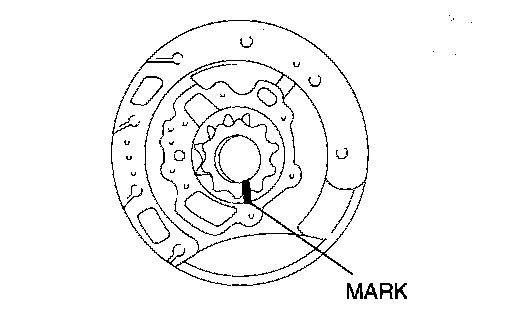 ^Mark the outer and inner rotors without scratching or denting them, then remove the oil pump housing.
