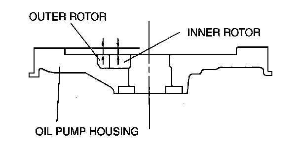 2. Measure the clearance between the end of the oil pump housing and the outer rotor and inner rotor at four places along their circumferences.