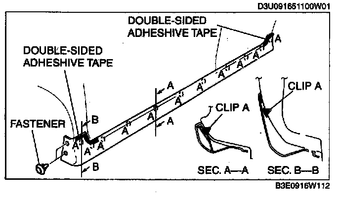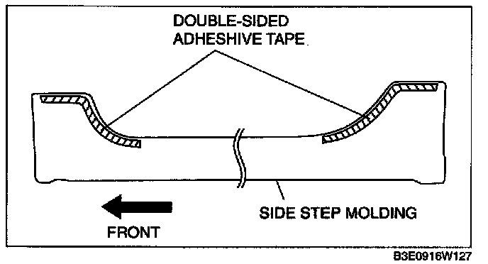 1. Attach double-sided adhesive tape to the side step molding as shown in the figure.