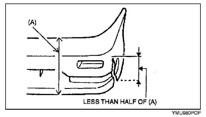 The three types of damaged bumpers shown below are considered repairable. Although a bumper which has been damaged greater than this could also be repaired, it should be replaced with a new one because such repair would detract from the looks and quality of the bumper. In addition, such repair is not considered reasonable in terms of work time.