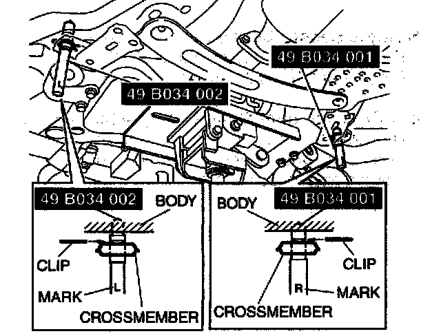 1. Verify the left and right identification marks and install the positioning SST to the front crossmember.