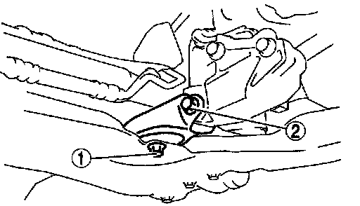 2. Support the front crossmember, front stabilizer, lower arm, and steering gear and linkage using a transmission Jack.