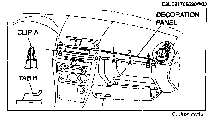 Pull the decoration panel outward and detach the clips A and tab B in the order shown in the figure.