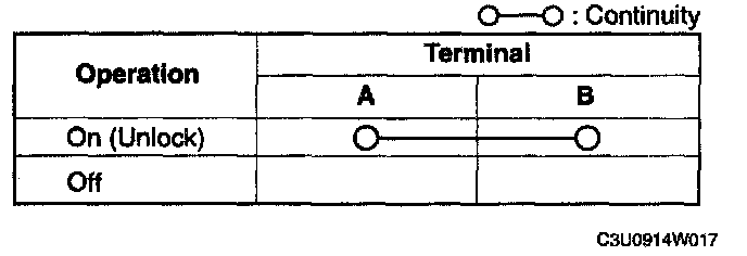 Inspect for continuity between the trunk lid key cylinder push switch terminals.
