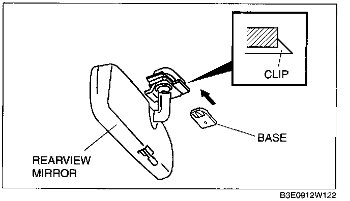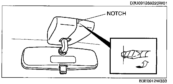 REAR VIEW MIRROR REMOVAL/INSTALLATION1. Insert a tape-wrapped flathead screwdriver into the notch and pry with the screwdriver in the direction shown by the arrow to remove the covers. (Vehicles with auto wiper system)