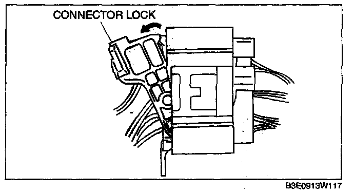 4. Pull out the connector lock in the direction of the arrow and disconnect the connector.