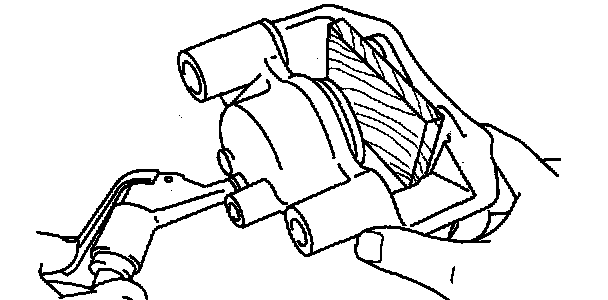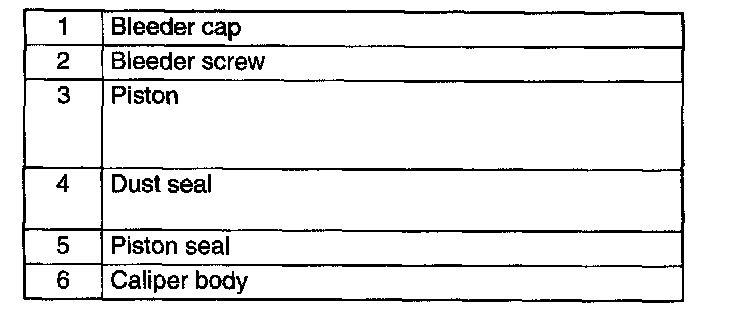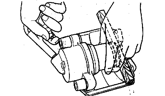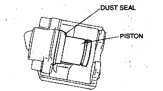 Warning: When blowing compressed air into the caliper body the piston may pop out and cause injury if not supported at the correct point. Securely support the piston friction surface by hand when blowing compressed air.