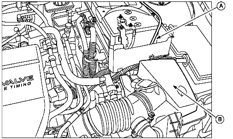4. Remove the battery (A), battery tray and air cleaner (B) from the engine compartment.