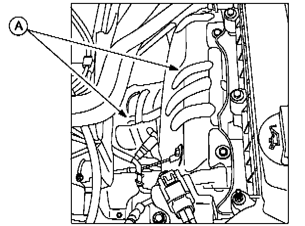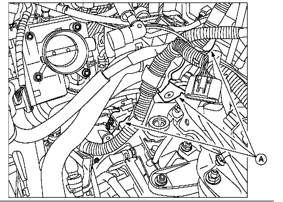 5. Loosen the bolts on the brackets (A) for the engine harness.