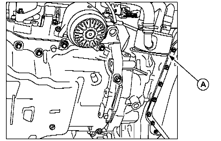 a. Apply a 2.5 mm bead down the center of the sides of the oil pan (A).