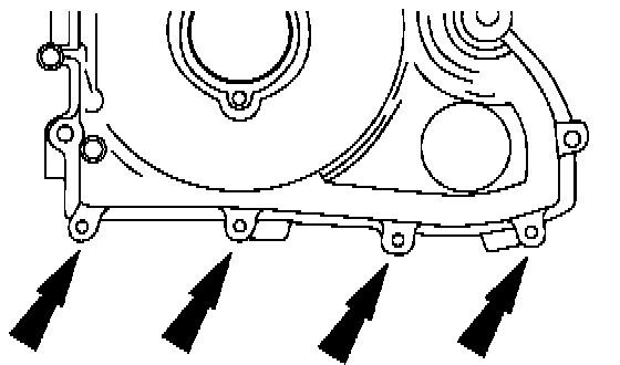 15. Remove the four bolts that secure the front cover to the oil pan.