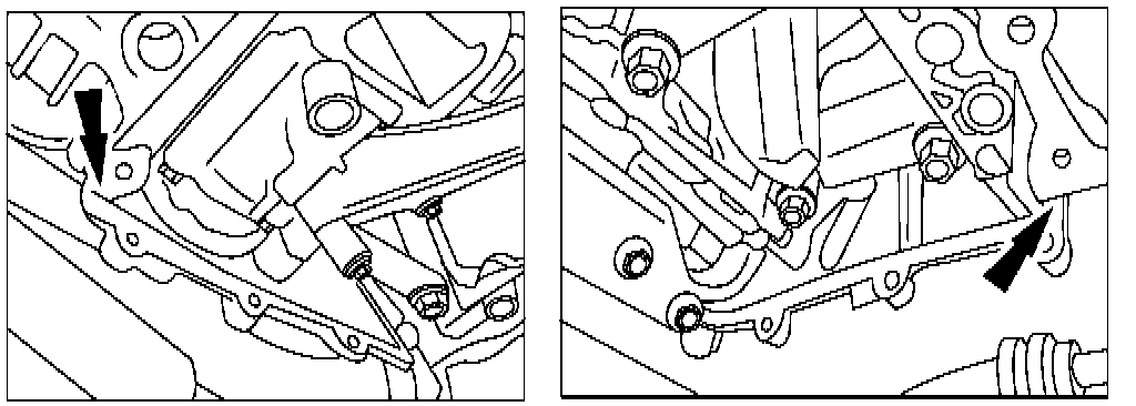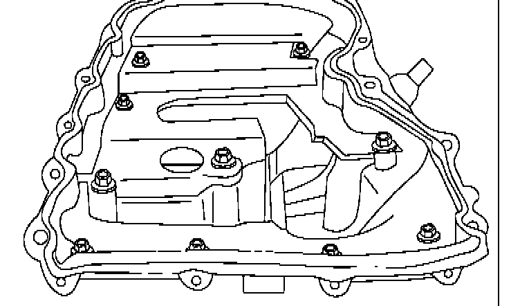 CAUTION: When reusing oil pan installation bolts, clean any old sealant from the bolts. Using bolts with the old seal adhering could cause cracks in the housing.
