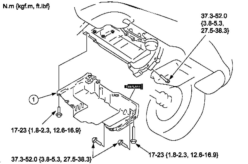 Tightening torque: 37.3 � 52.0 N.m (27.5-38.3 ft-lb)