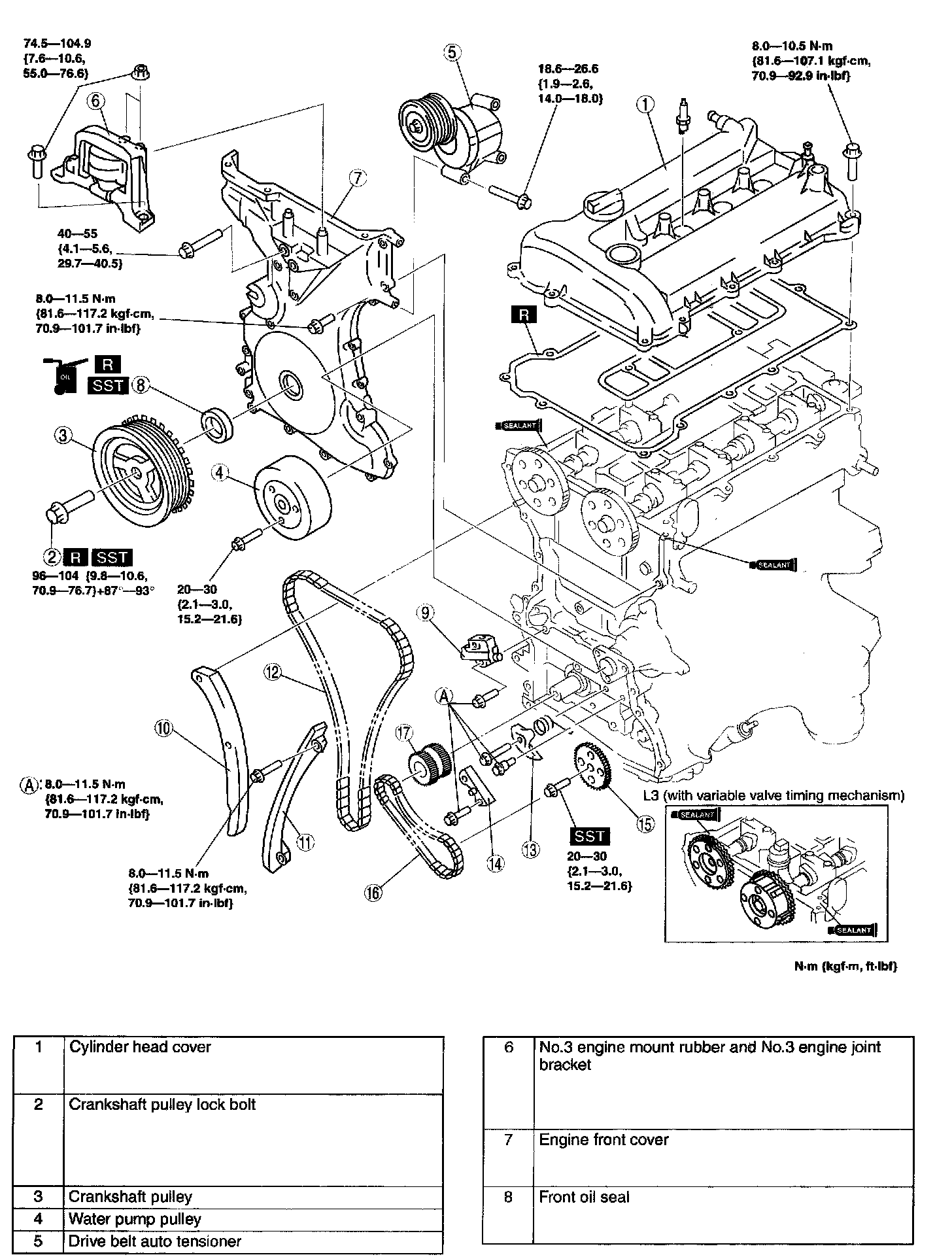 - Install the engine front cover within 10 min of applying the silicone sealant.
