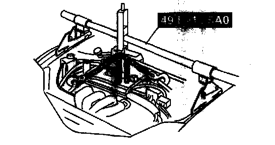 Note: A hoist or small crane can be used in place of the SST (49E 017 5AO).