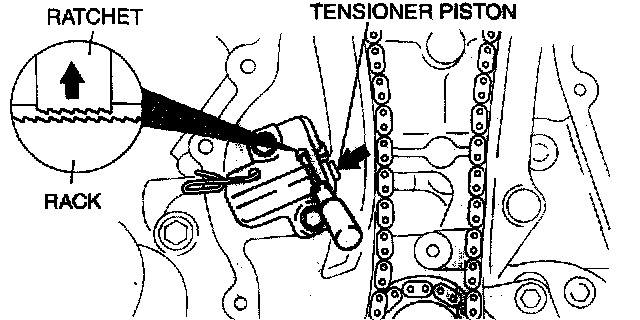 3. Remove the retaining wire or paper clip from the auto tensioner to apply tension to the timing chain.