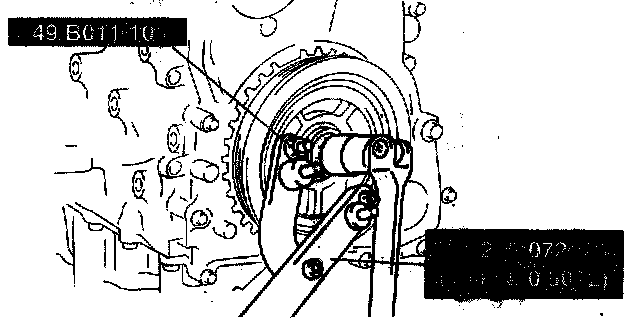 3. Turn the crankshaft clockwise the crankshaft is in the No. 1 cylinder TDC position (until the balance weight is attached to the SST).