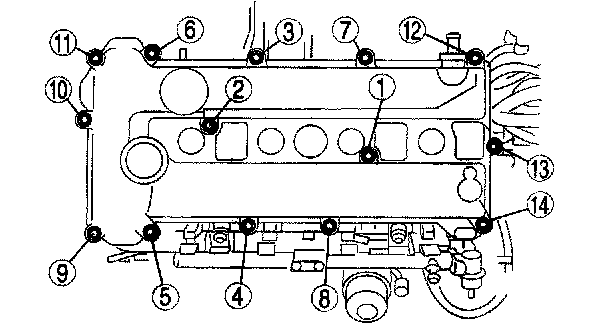 Caution: Install the cylinder head cover within 10 min of applying the silicone sealant.