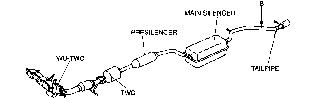 1. Cut the pipe between the main silencer and tailpipe using the following procedure. (Cut location B)