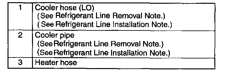4. Disconnect from the A/C unit in the order indicated in the table.