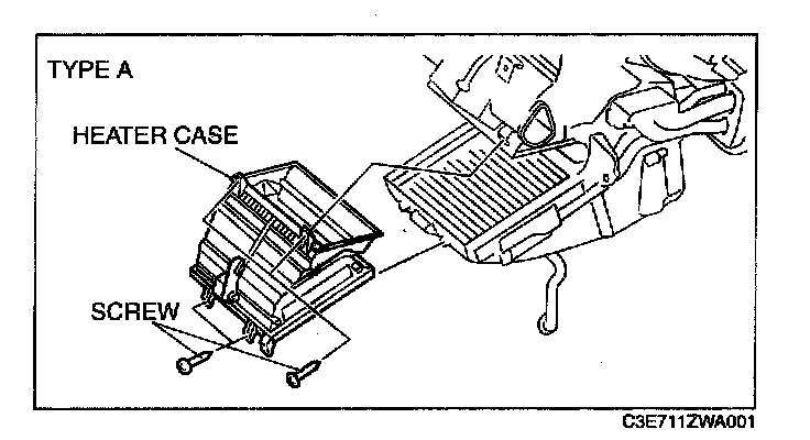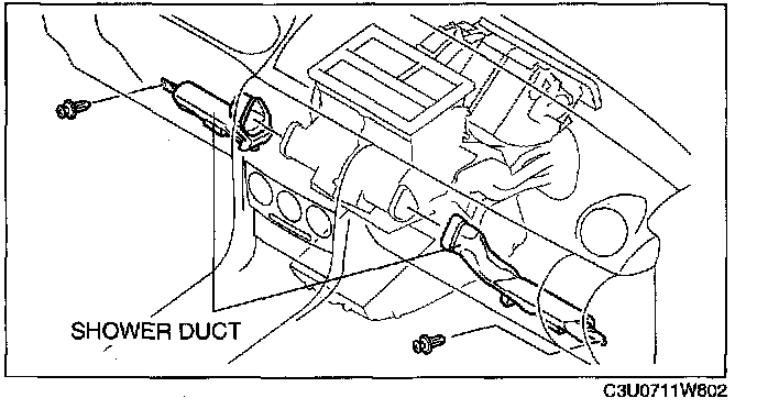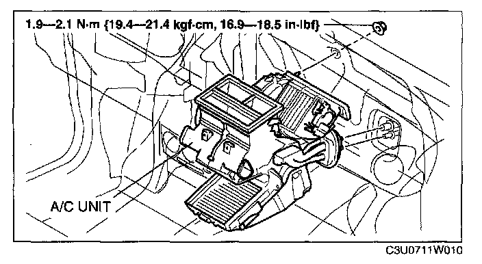 15. Remove the nuts and bolts for installing the A/C unit to the dashboard.
