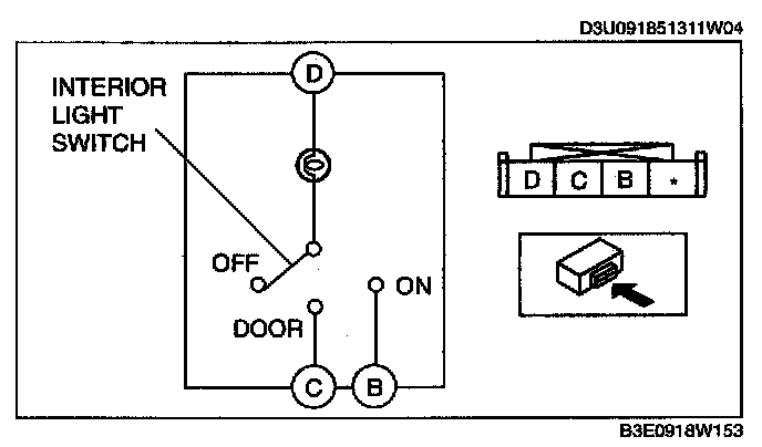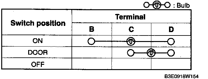 Verify that the continuity between the interior light terminals is as indicated in the table.