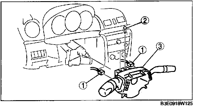 1. Pull the combination switch locks in the direction indicated in the figure and disengage the tab