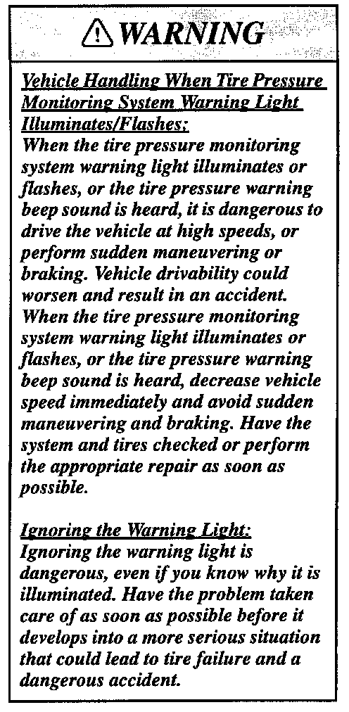 Tire Monitoring System: Description and Operation
