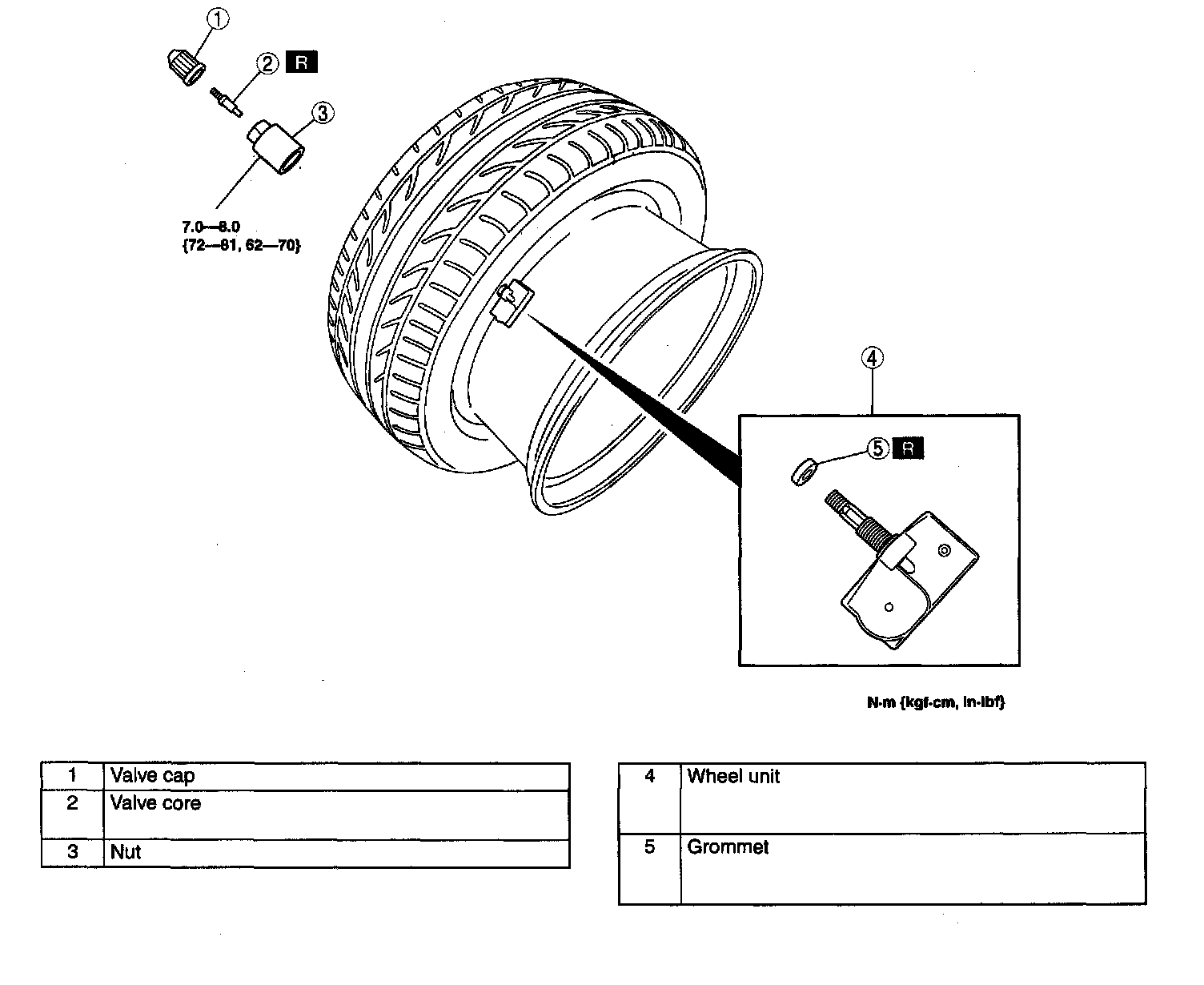 Tightening torque 7.0 - 8.0 Nm (72 - 82 kgf-cm, 62 - 70 inch lbs.)