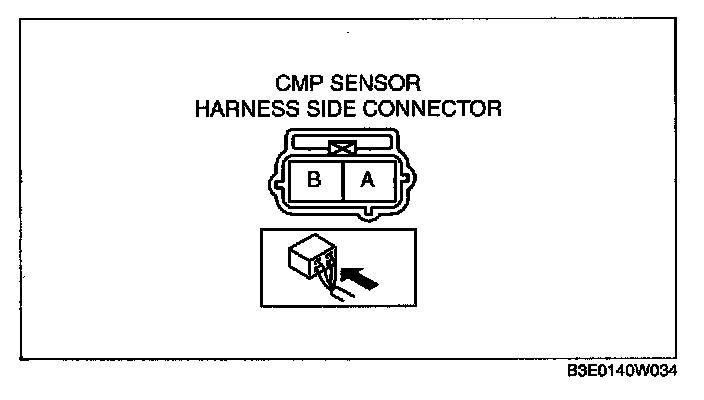 2. Measure the resistance between CMP sensor connector terminals A and B.