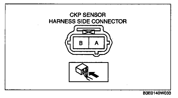2. Measure the resistance between CKP sensor connector terminals A and B.