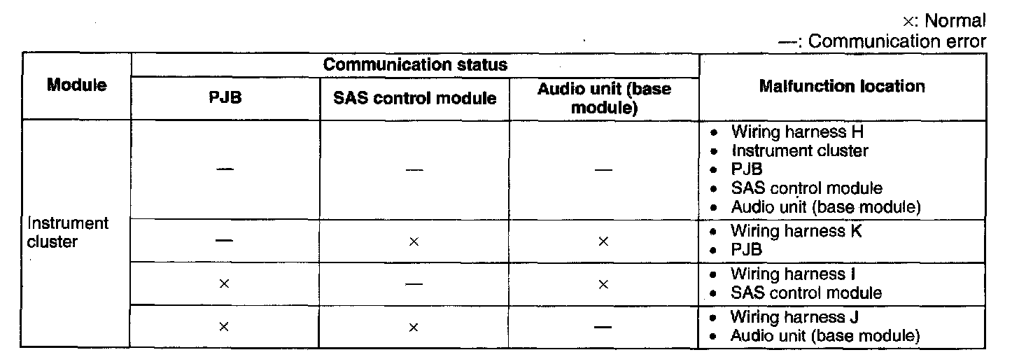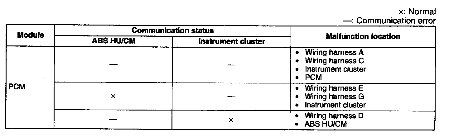 2. Referring to the table, determine the malfunctioning part of the CAN system.