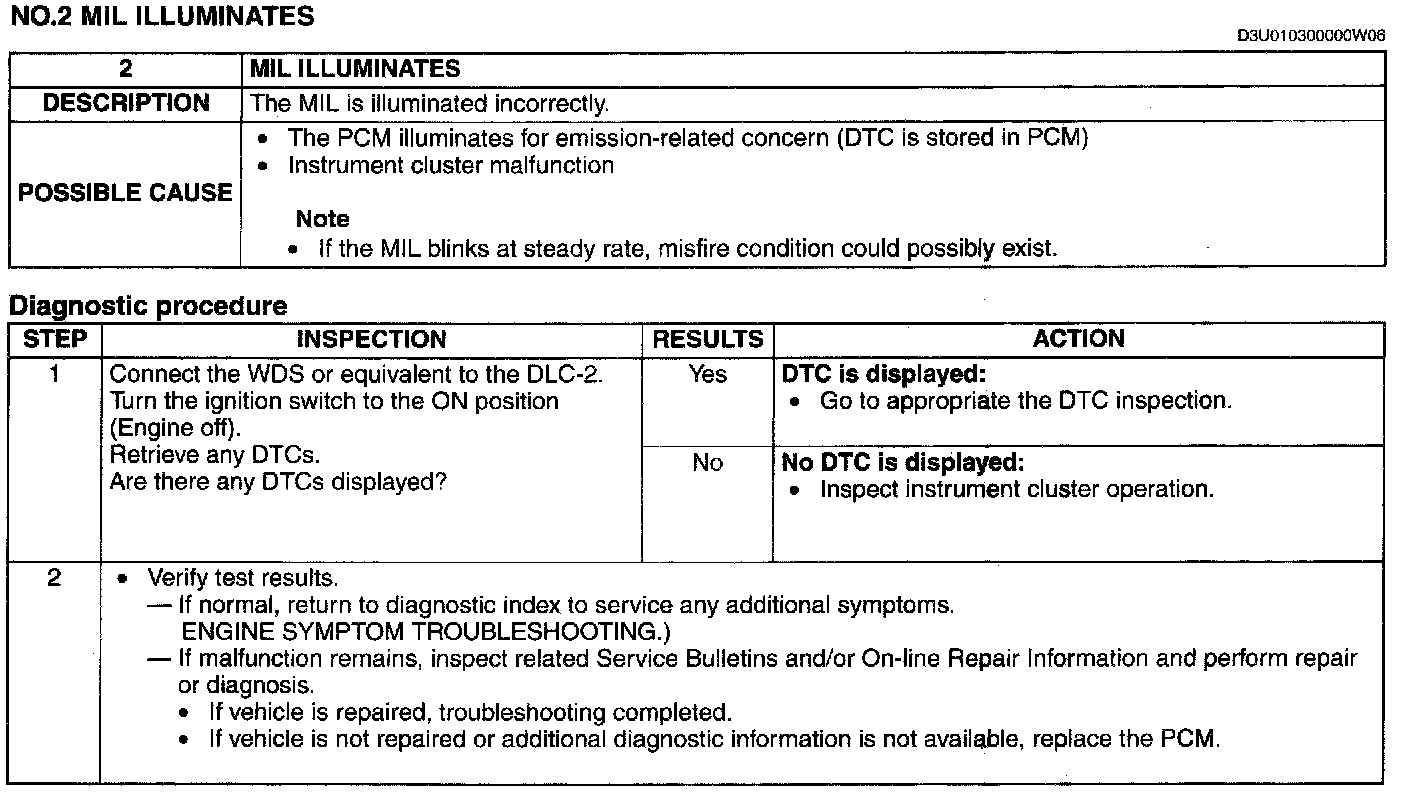 Malfunction Indicator Lamp: Testing and Inspection
