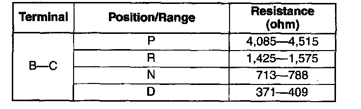 TRANSAXLE RANGE (TR) SWITCH INSPECTION